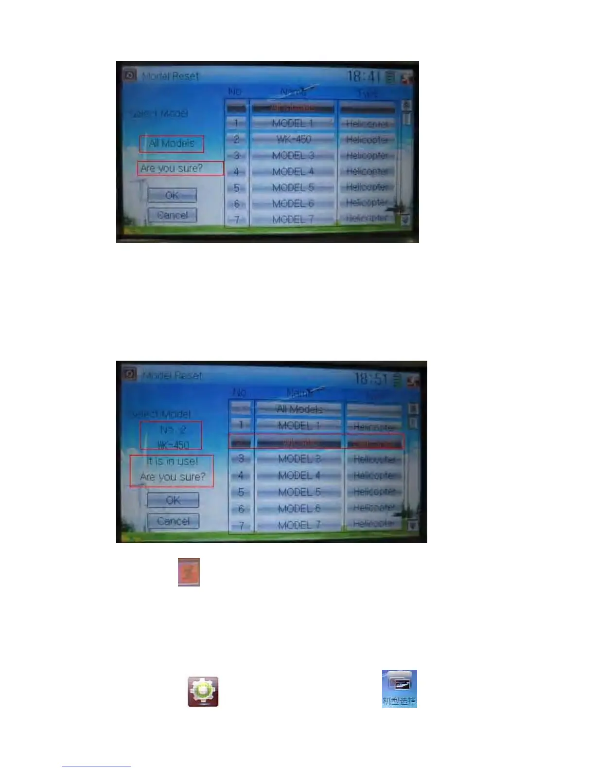 Touch ‘All Models’ in Model Reset interface. Then ‘’All Models” and enquiry “Are you