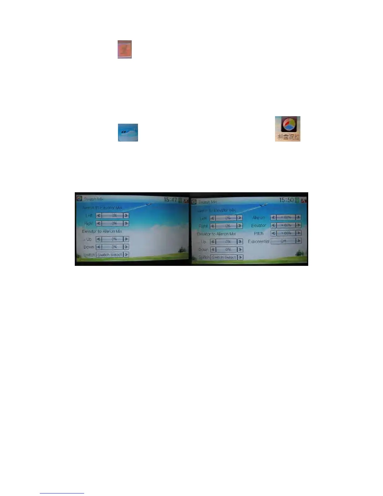 enter Swash Mix. The interface will show the two options of Aileron to Elevator Mix,