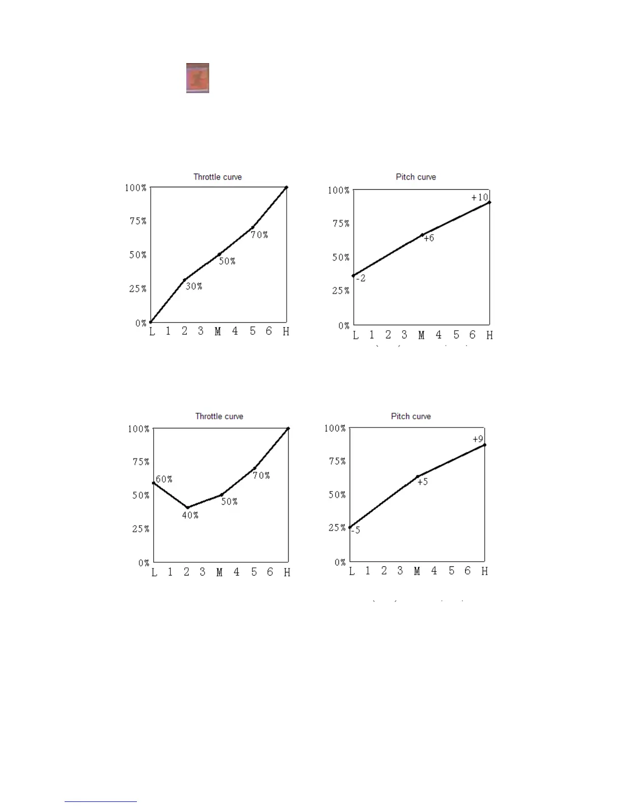 Below are shown several basic examples of Throttle curves and Pitch Curves for