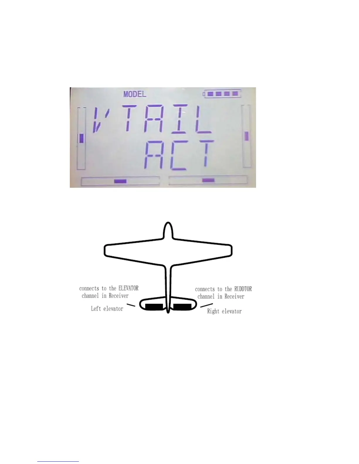 Press R or L ,under V-TAIL setting interface ,there are” INHIBIT” and “ACT”,select