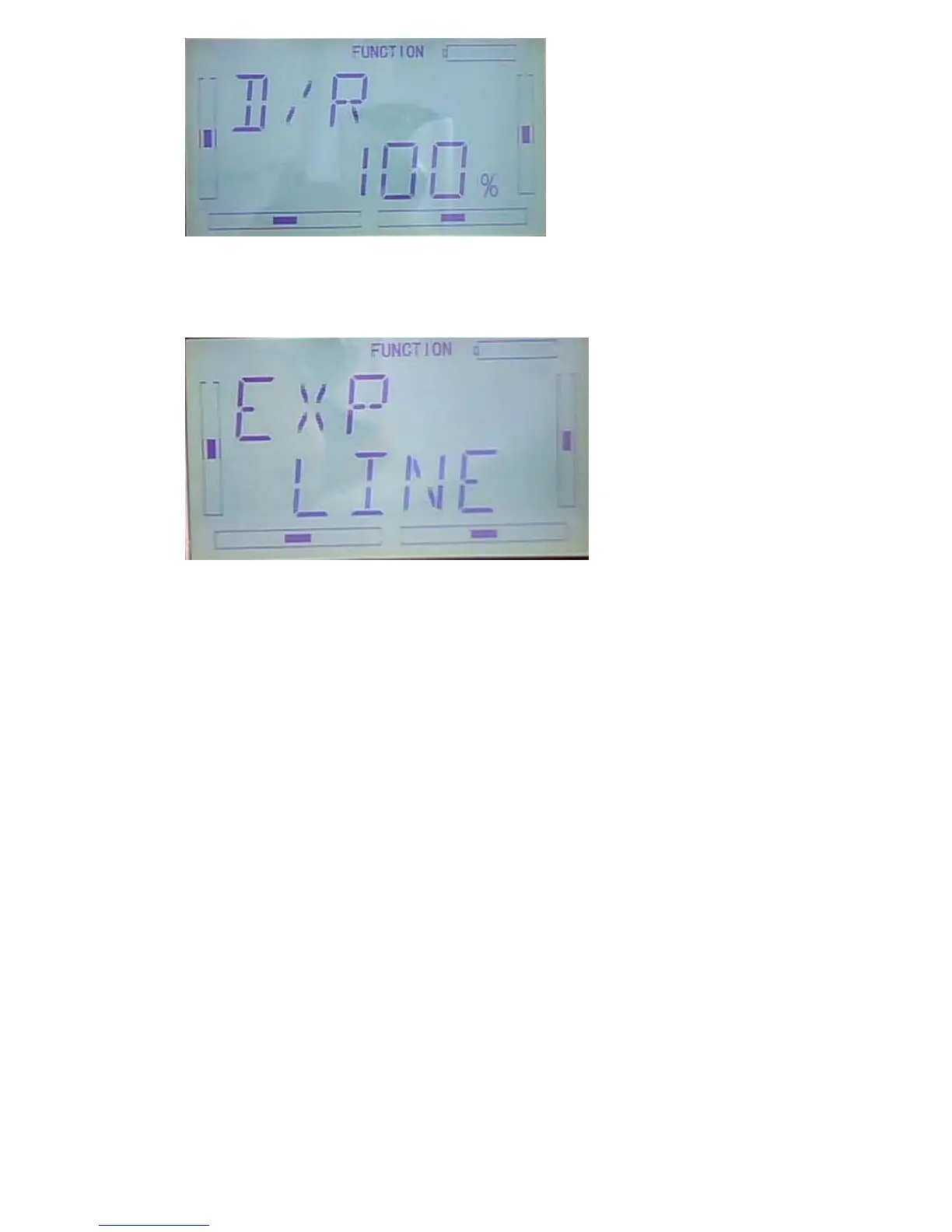 After DUAL RATE adjustment finished, press DN to enter EXP interface. There are