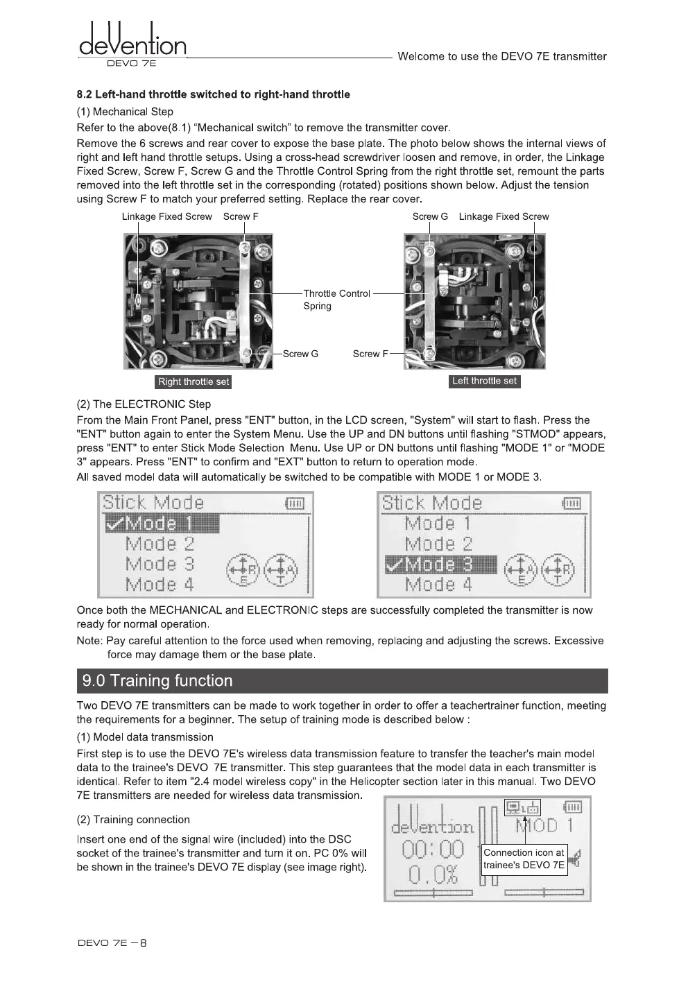 identical. Refer to item "2.4 model wireless copy" in the Helicopter section later in this manual. Two DEVO