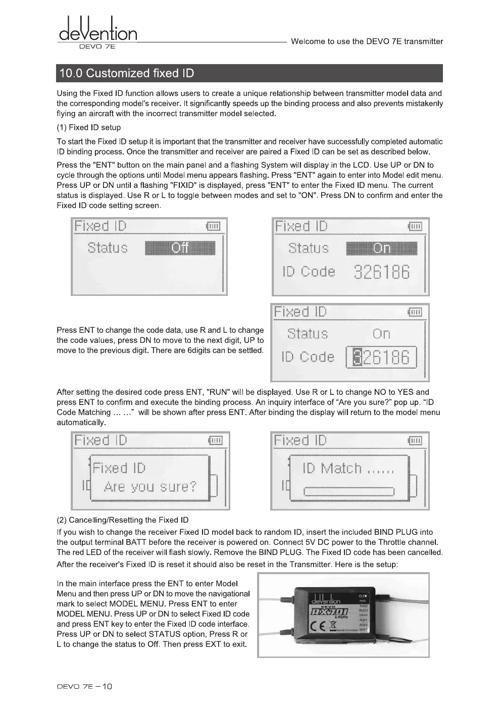 ID binding process. Once the transmitter and receiver are paired a Fixed ID can be set as described below.