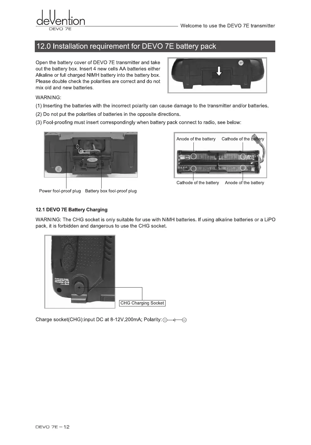 WARNING: The CHG socket is only suitable for use with NiMH batteries. If using alkaline batteries or a LiPO