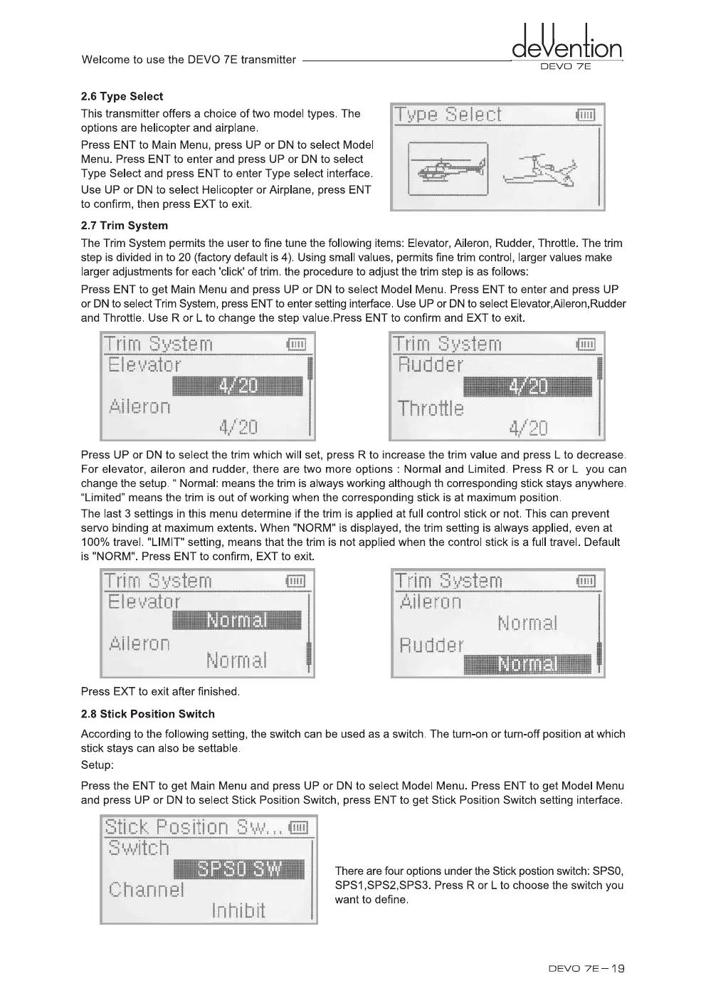 change the setup. " Normal: means the trim is always working although th corresponding stick stays anywhere.