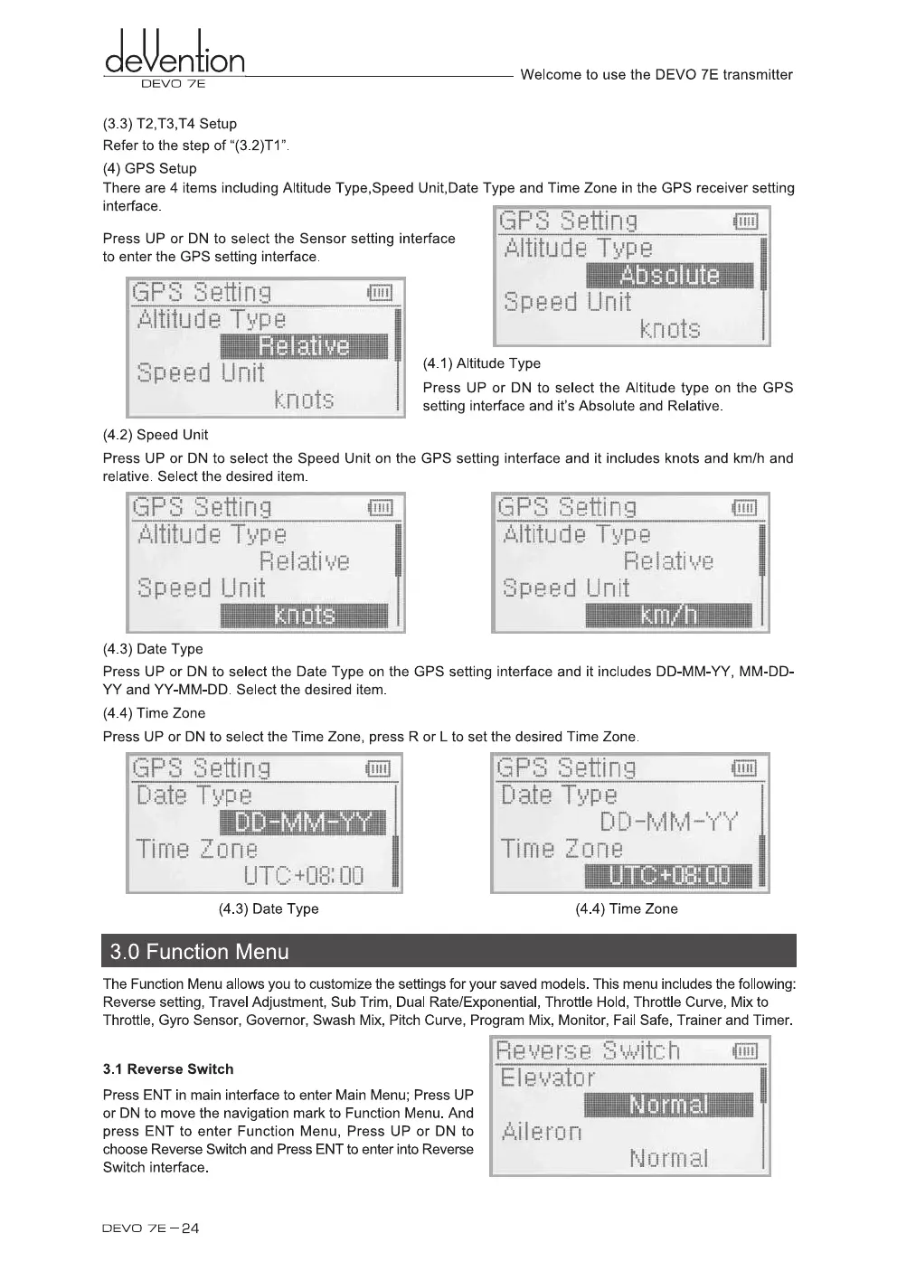 There are 4 items including Altitude Type,Speed Unit,Date Type and Time Zone in the GPS receiver setting
