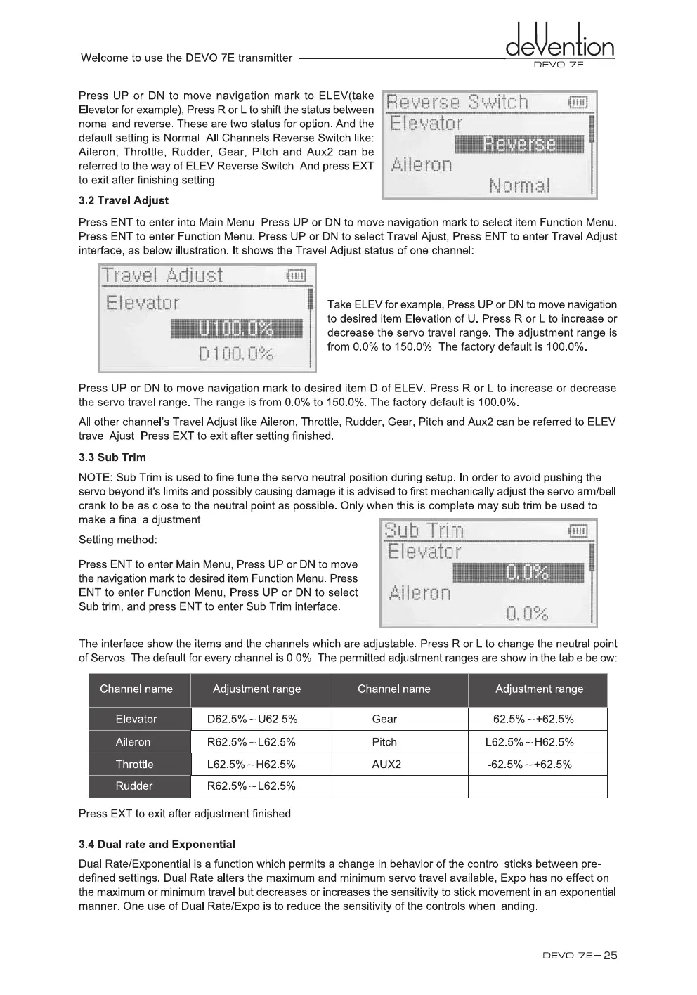 All other channel's Travel Adjust like Aileron, Throttle, Rudder, Gear, Pitch and Aux2 can be referred to ELEV
