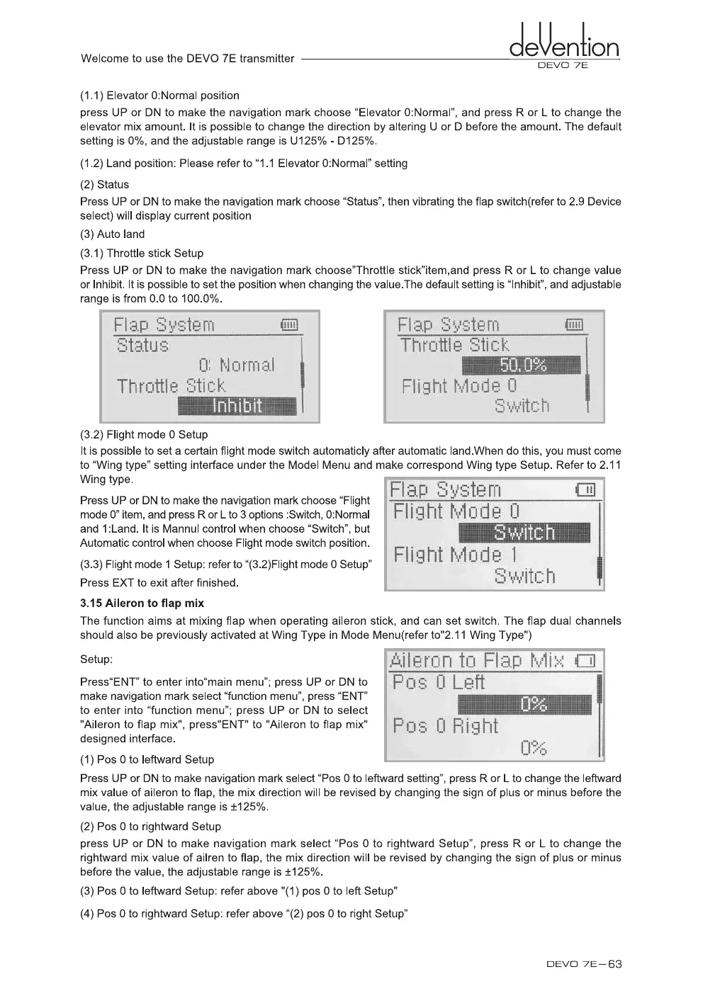 The function aims at mixing flap when operating aileron stick, and can set switch. The flap dual channels