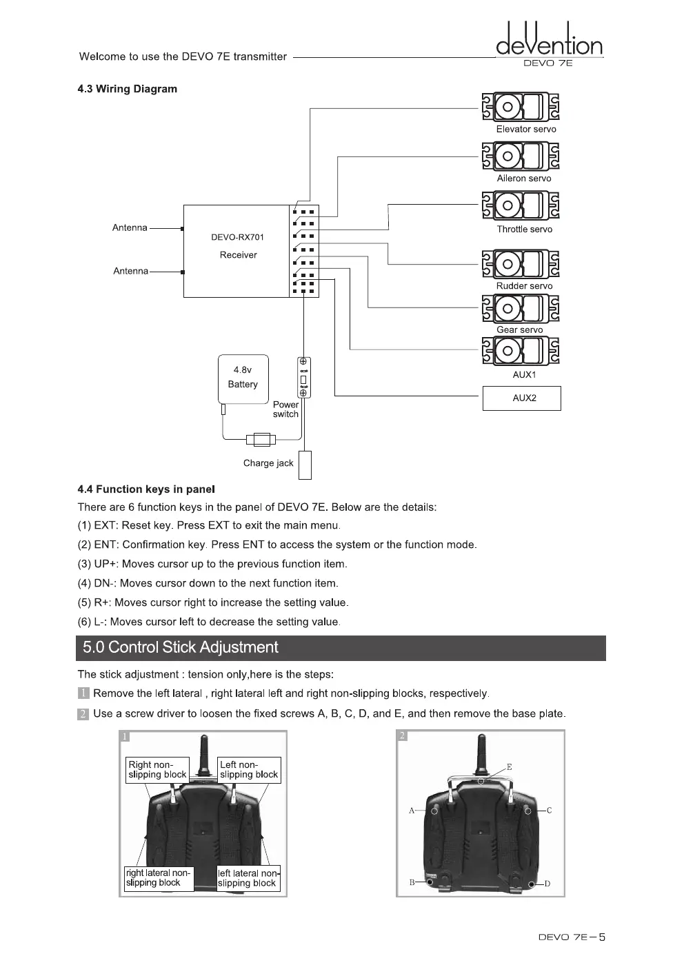 There are 6 function keys in the panel of DEVO 7E. Below are the details: