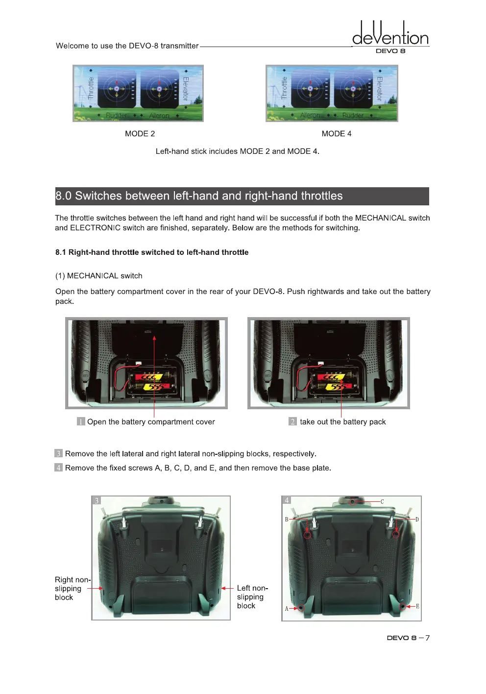 devention DEVO 8 - Switches between Left-Hand and Right-Hand Throttles
