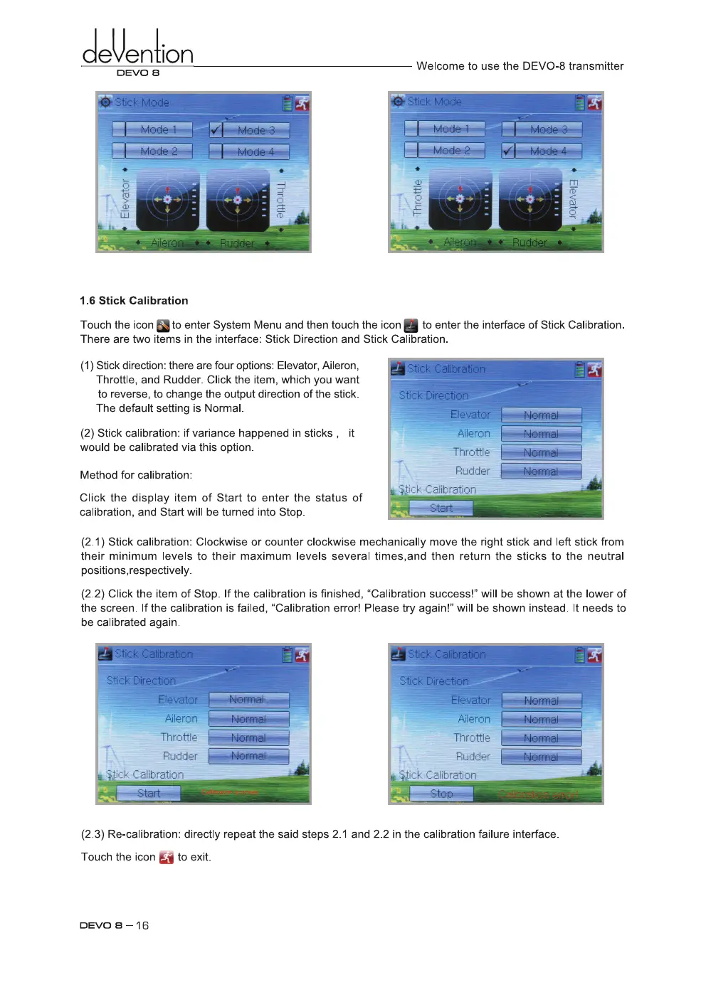 devention DEVO 8 - Stick Calibration