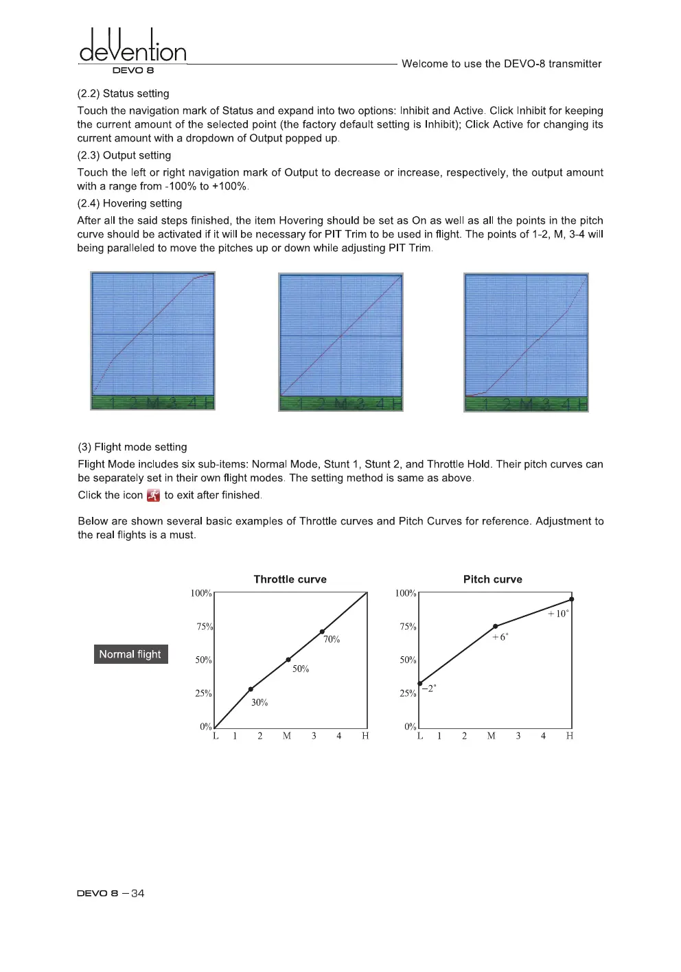 devention DEVO 8 - Status Setting; Output Setting; Hovering Setting; Flight Mode Setting