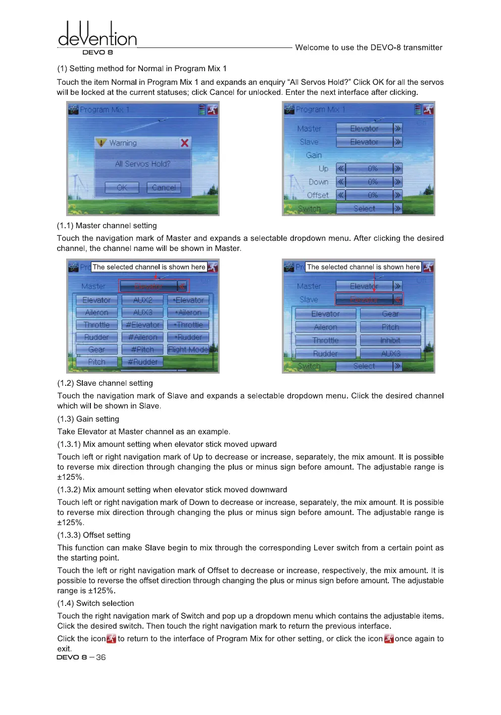 devention DEVO 8 - Master Channel Setting; Slave Channel Setting; Gain Setting; Offset Setting