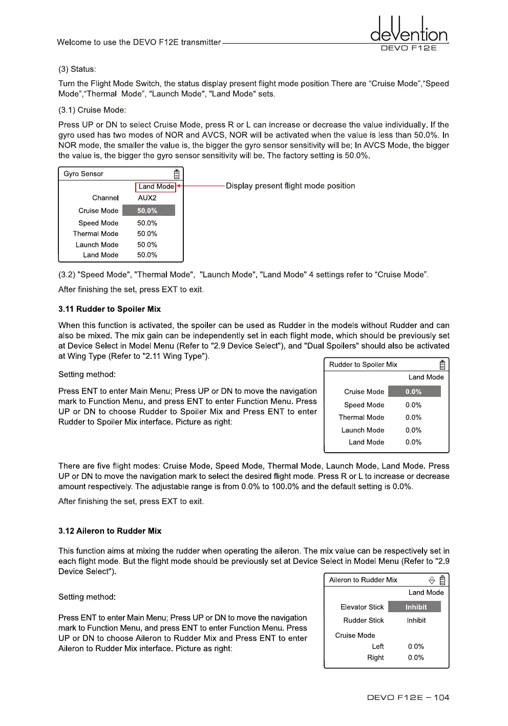 each flight mode. But the flight mode should be previously set at Device Select in Model Menu (Refer to "2.9