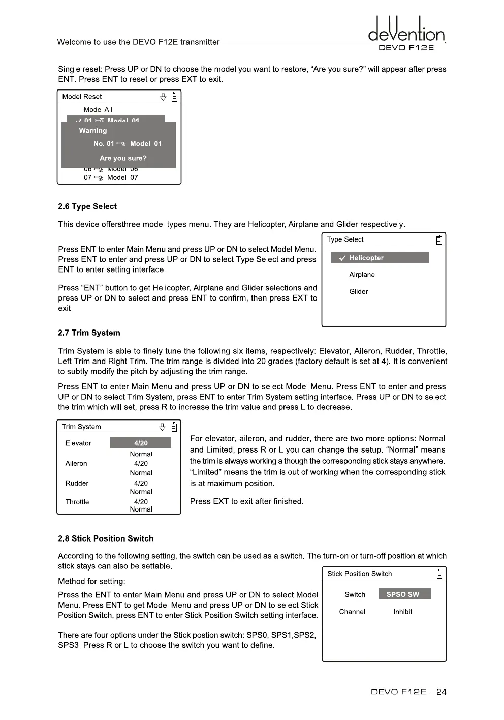 Menu. Press ENT to get Model Menu and press UP or DN to select Stick