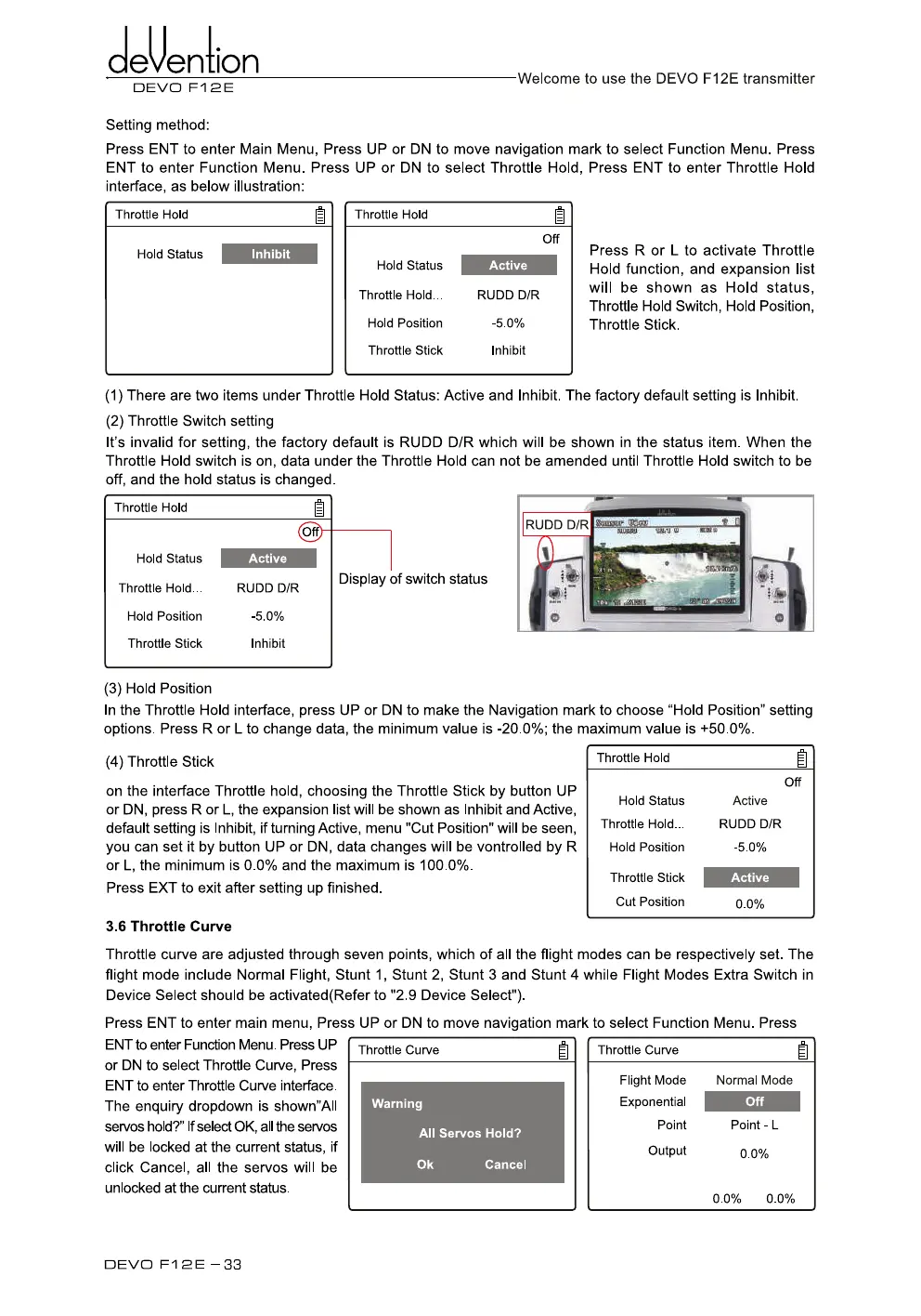 n the Throttle Hold interface, press UP or DN to make the Navigation mark to choose "Hold Position" setting