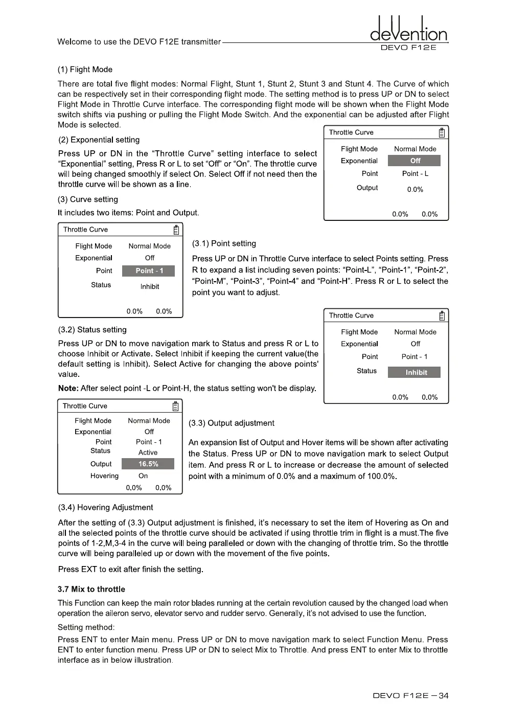 Press UP or DN in Throttle Curve interface to select Points setting. Press