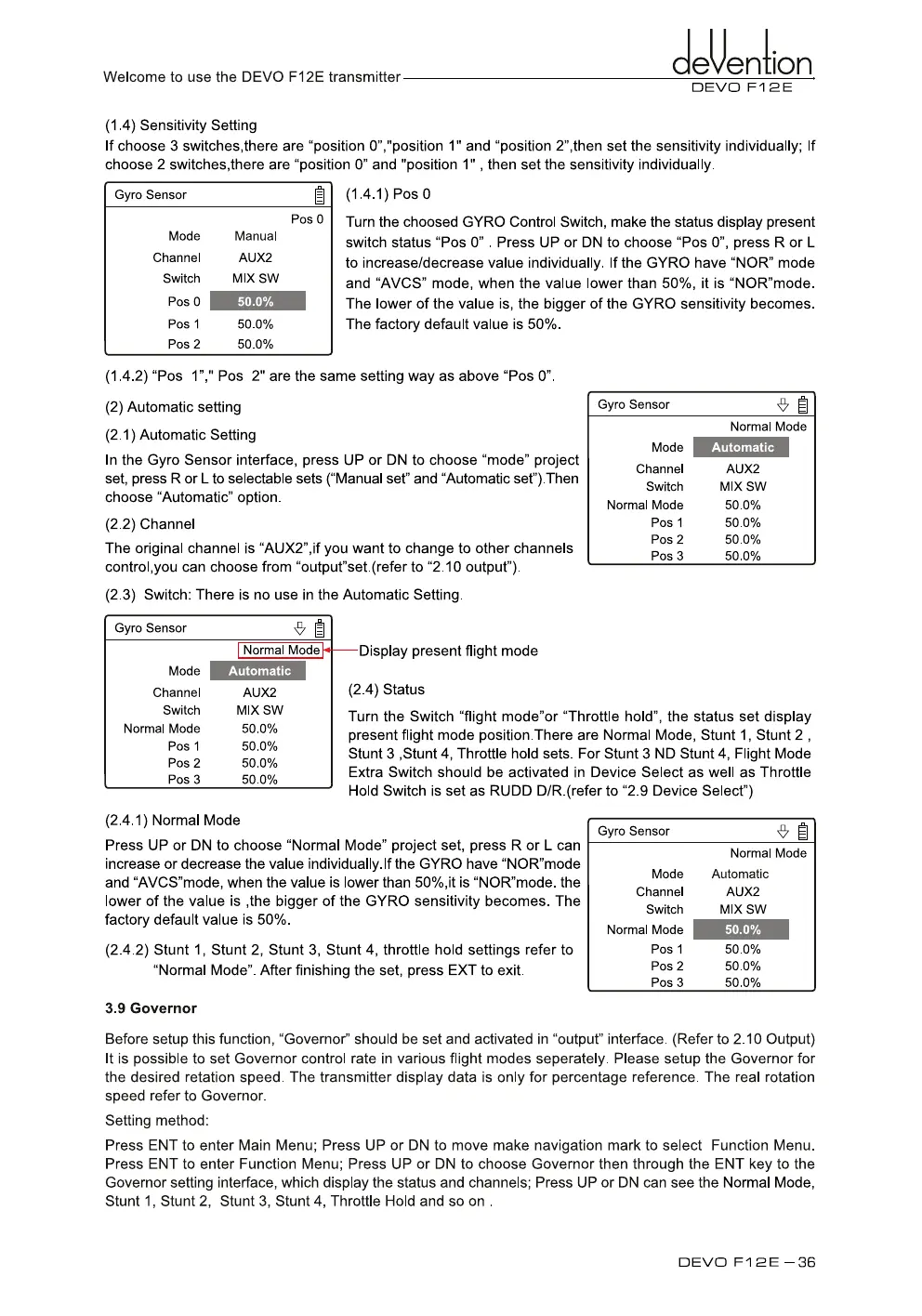 to increase/decrease value individually. If the GYRO have "NOR" mode
