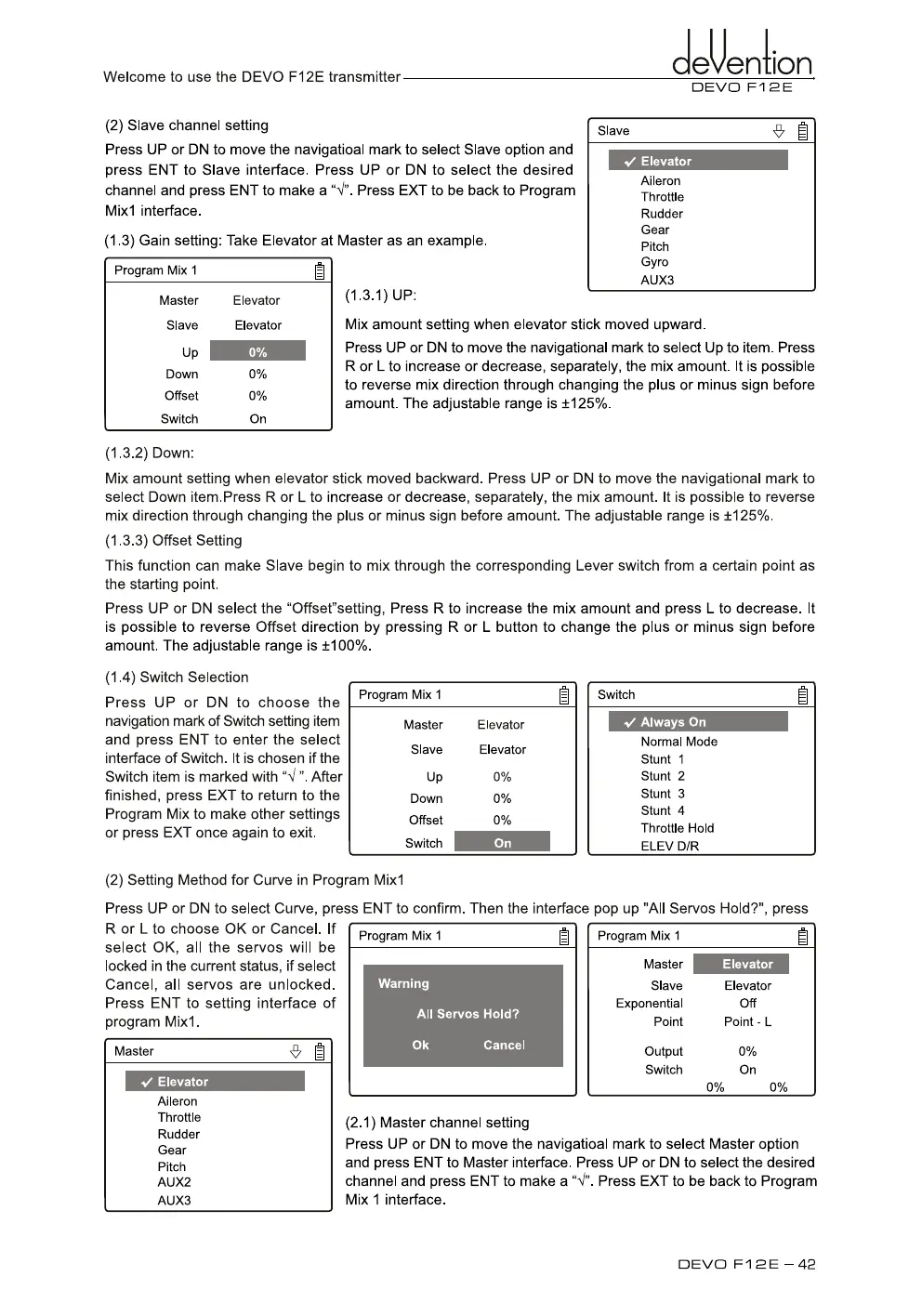 Mix amount setting when elevator stick moved backward. Press UP or DN to move the navigational mark to