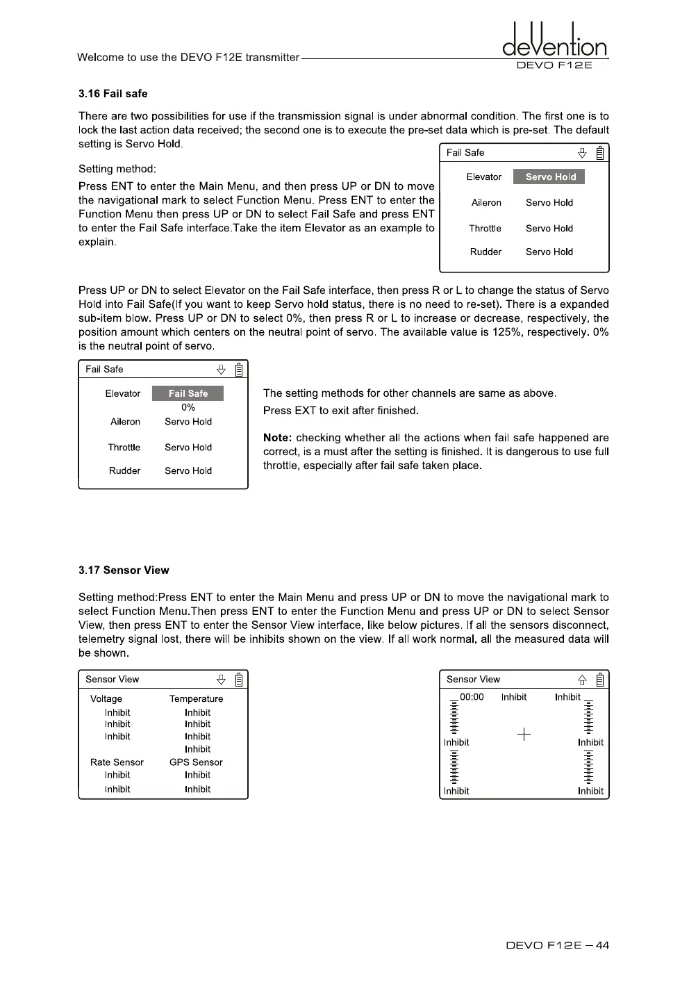 Function Menu then press UP or DN to select Fail Safe and press ENT