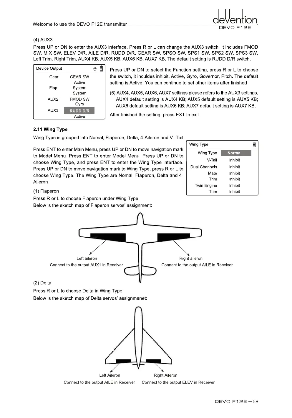 Wing Type is grouped into Nomal, Flaperon, Delta, 4-Aileron and V -Tail.