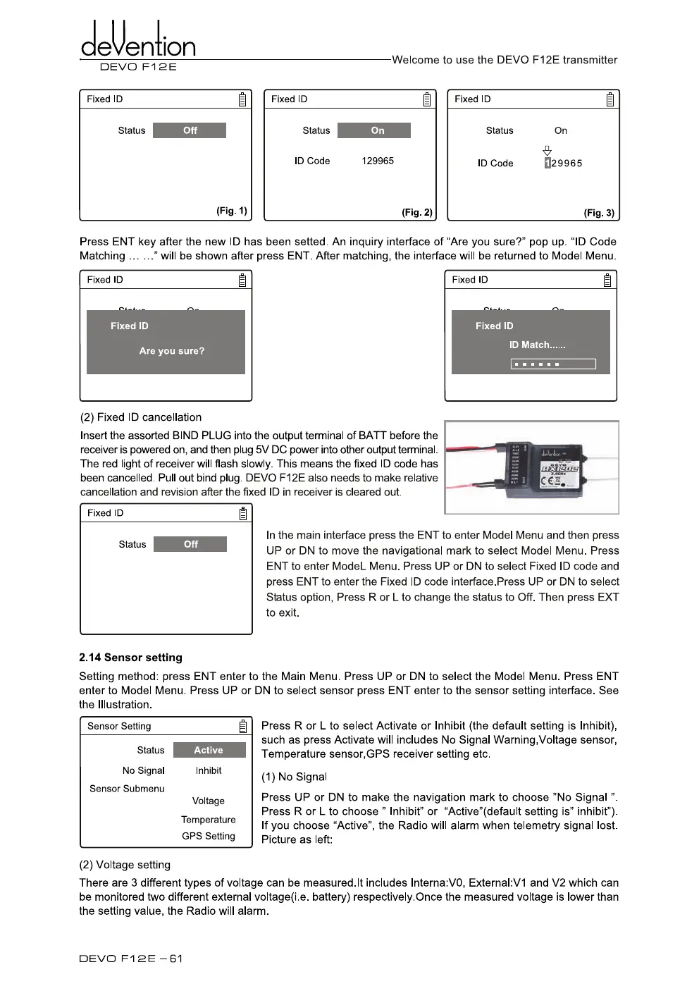 been cancelled. Pull out bind plug. DEVO F12E also needs to make relative