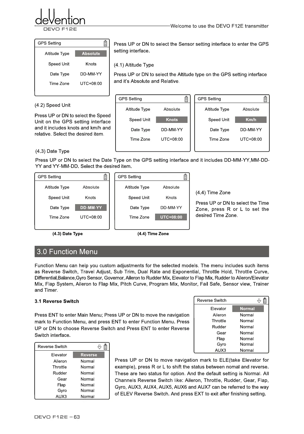 Channels Reverse Switch like: Aileron, Throttle, Rudder, Gear, Flap,