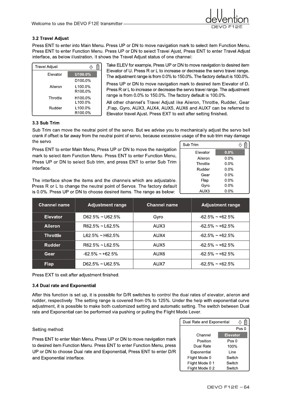 All other channel's Travel Adjust like Aileron, Throttle, Rudder, Gear