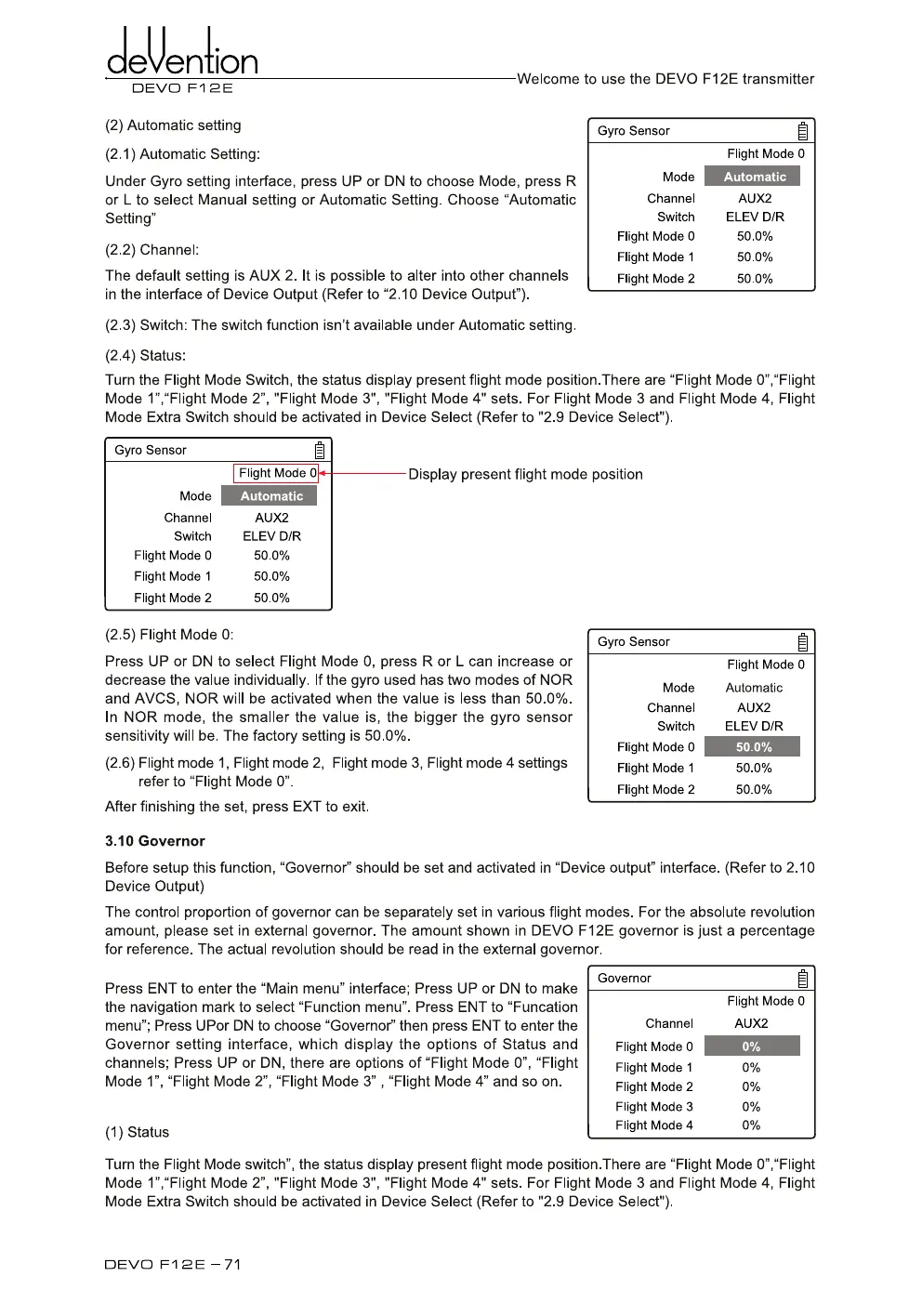 amount, please set in external governor. The amount shown in DEVO F12E governor is just a percentage