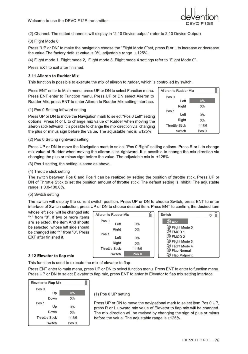 This function is possible to execute the mix of aileron to rudder, which is controlled by switch.