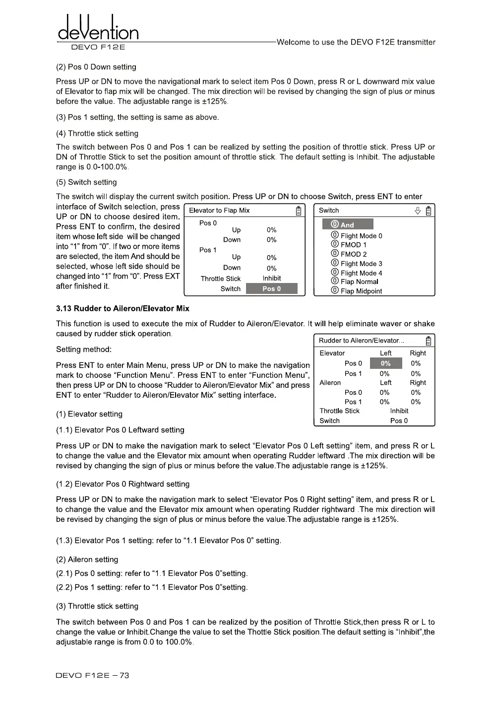 to change the value and the Elevator mix amount when operating Rudder rightward .The mix direction will