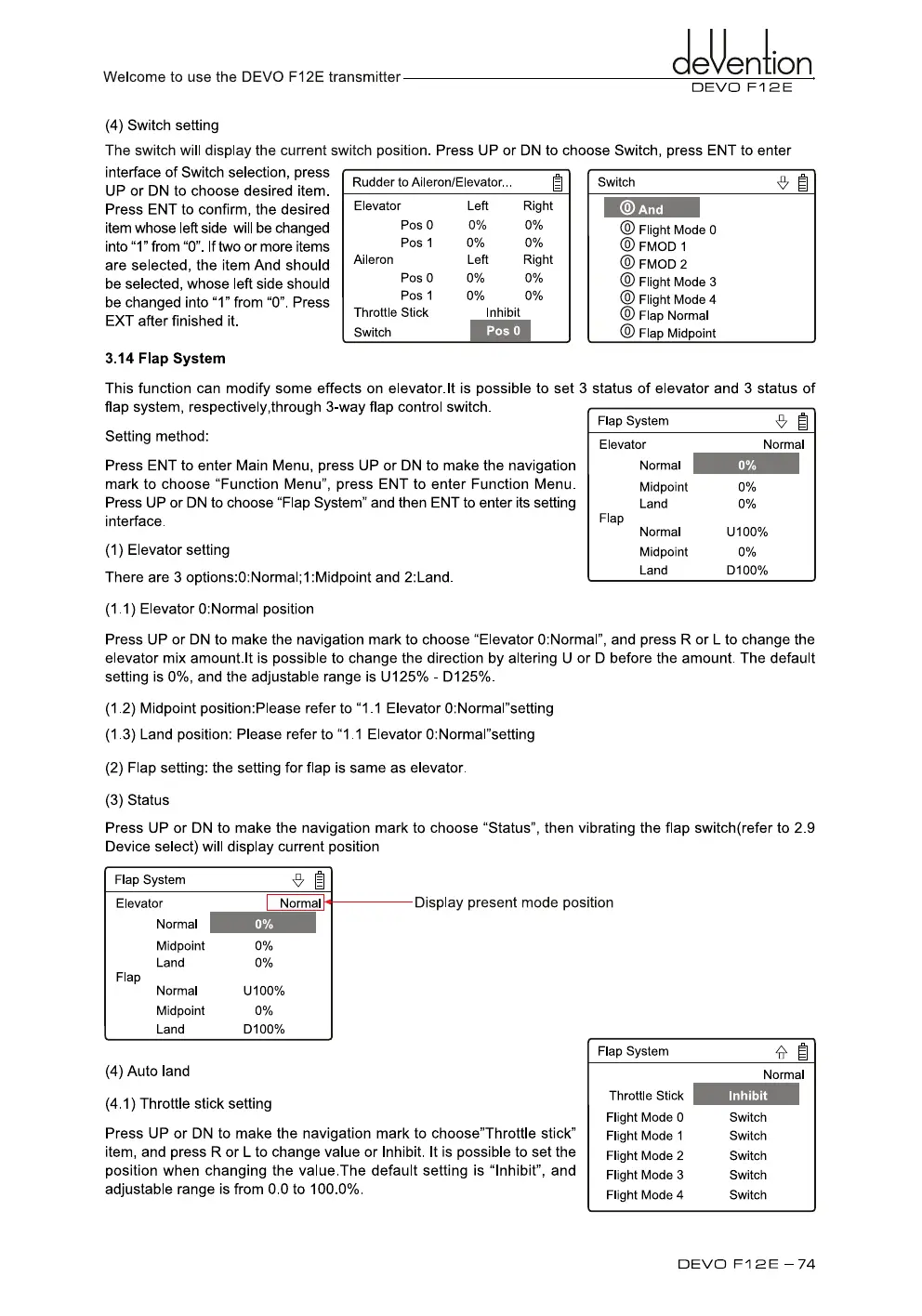 Press UP or DN to choose "Flap System" and then ENT to enter its setting