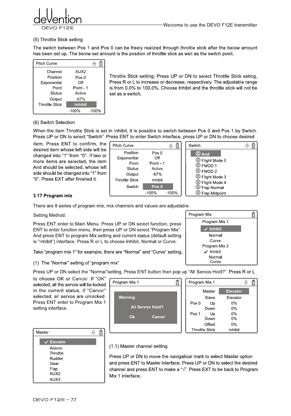 The switch between Pos 1 and Pos 0 can be freely realized through throttle stick after the below amount