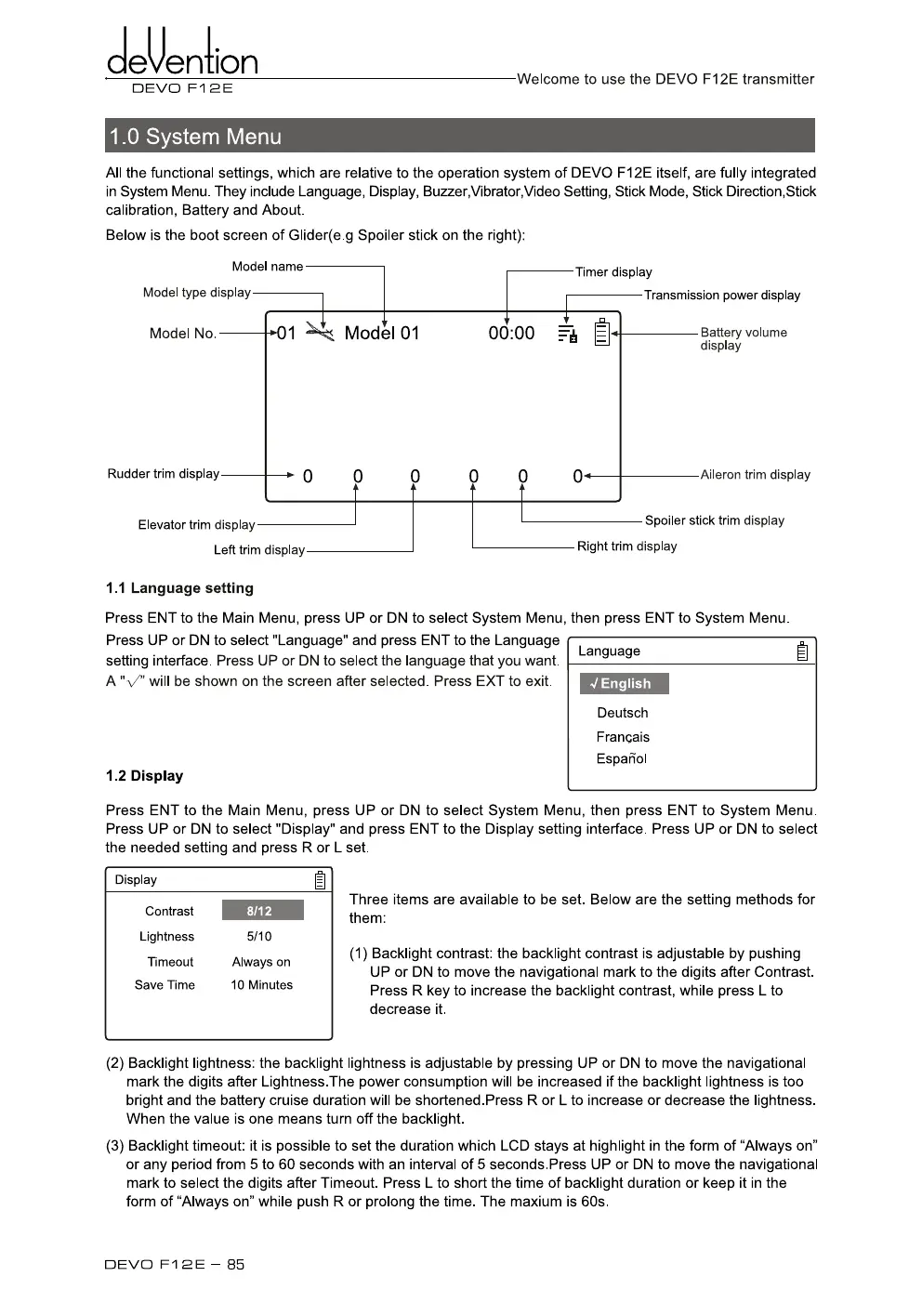 All the functional settings, which are relative to the operation system of DEVO F12E itself, are fully integrated