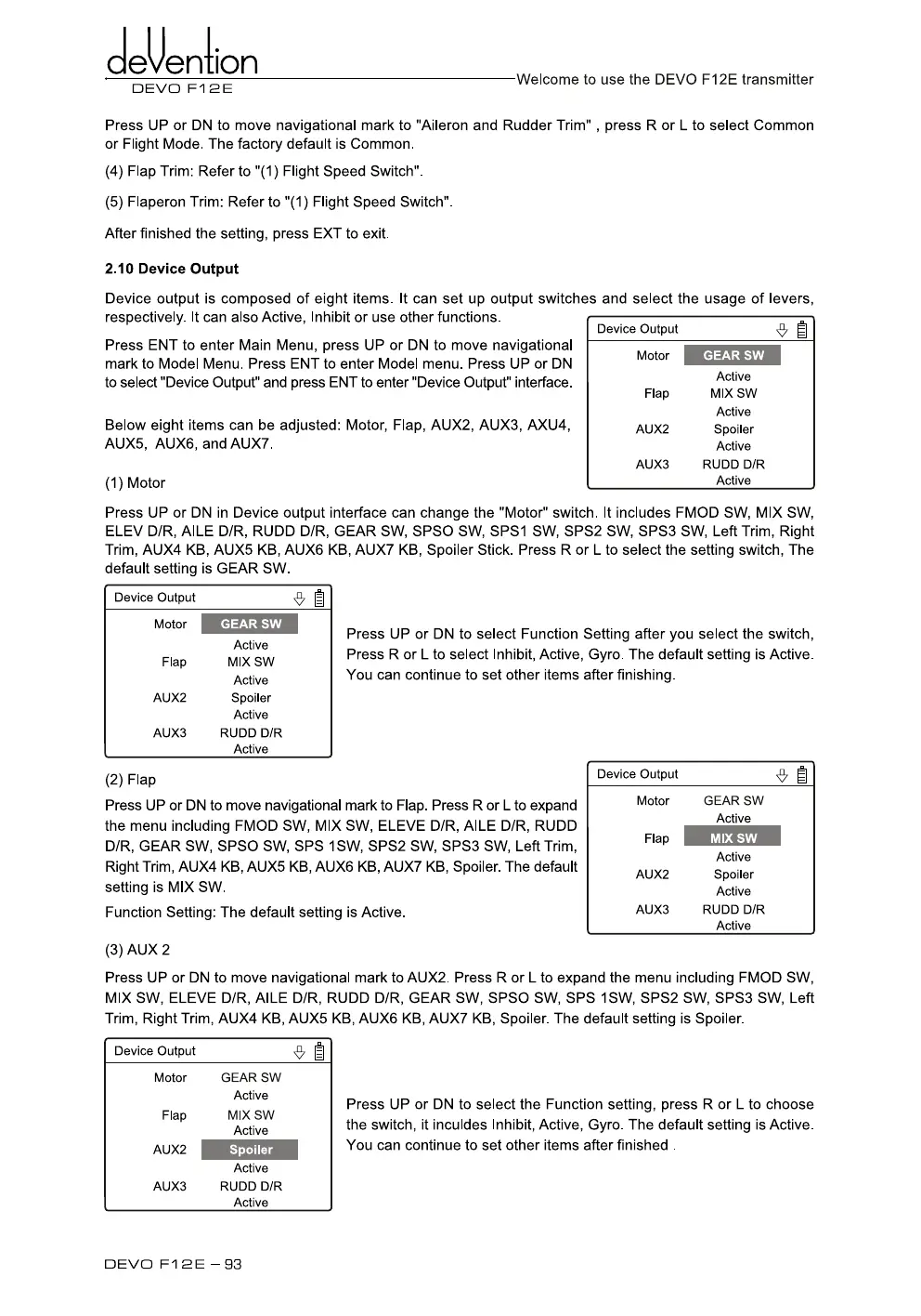 Device output is composed of eight items. It can set up output switches and select the usage of levers,