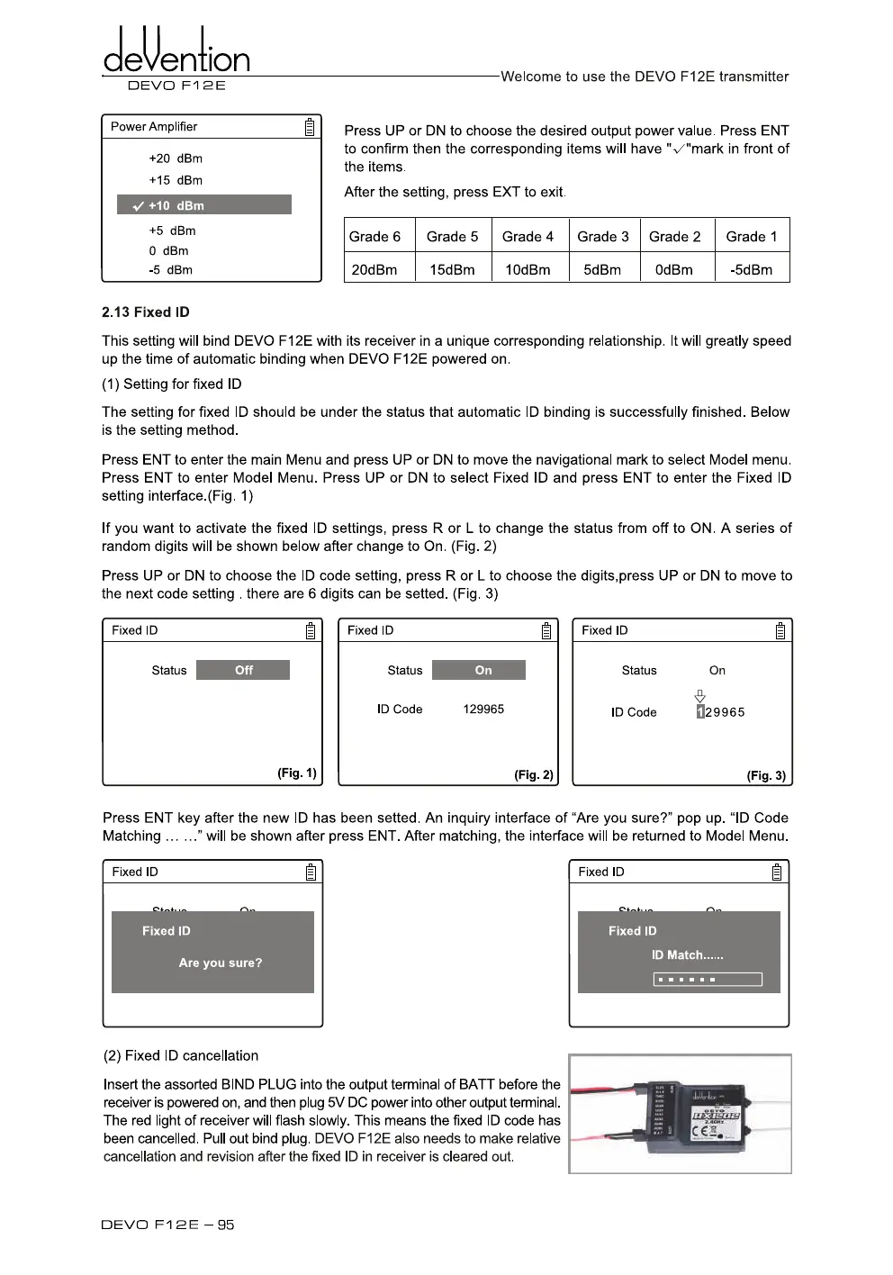 This setting will bind DEVO F12E with its receiver in a unique corresponding relationship. It will greatly speed