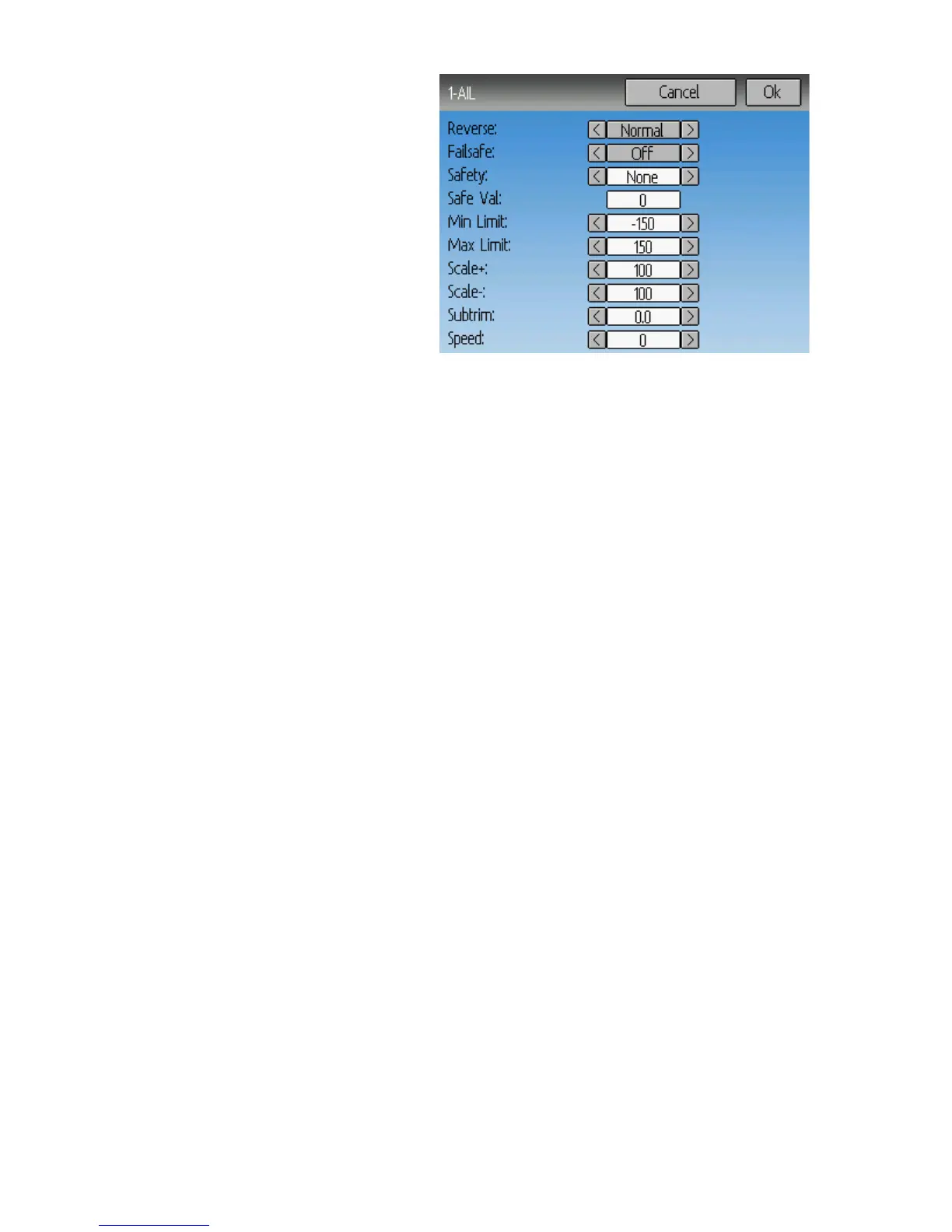 Scale+/Scale-: These values define a final scalar to adjust the servo throw.