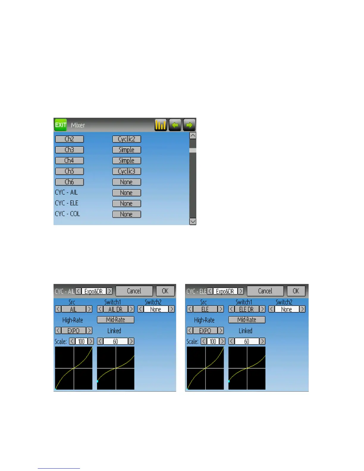 • Channel 1 (or ‘ELE’ channel) to ‘Cyclic1’