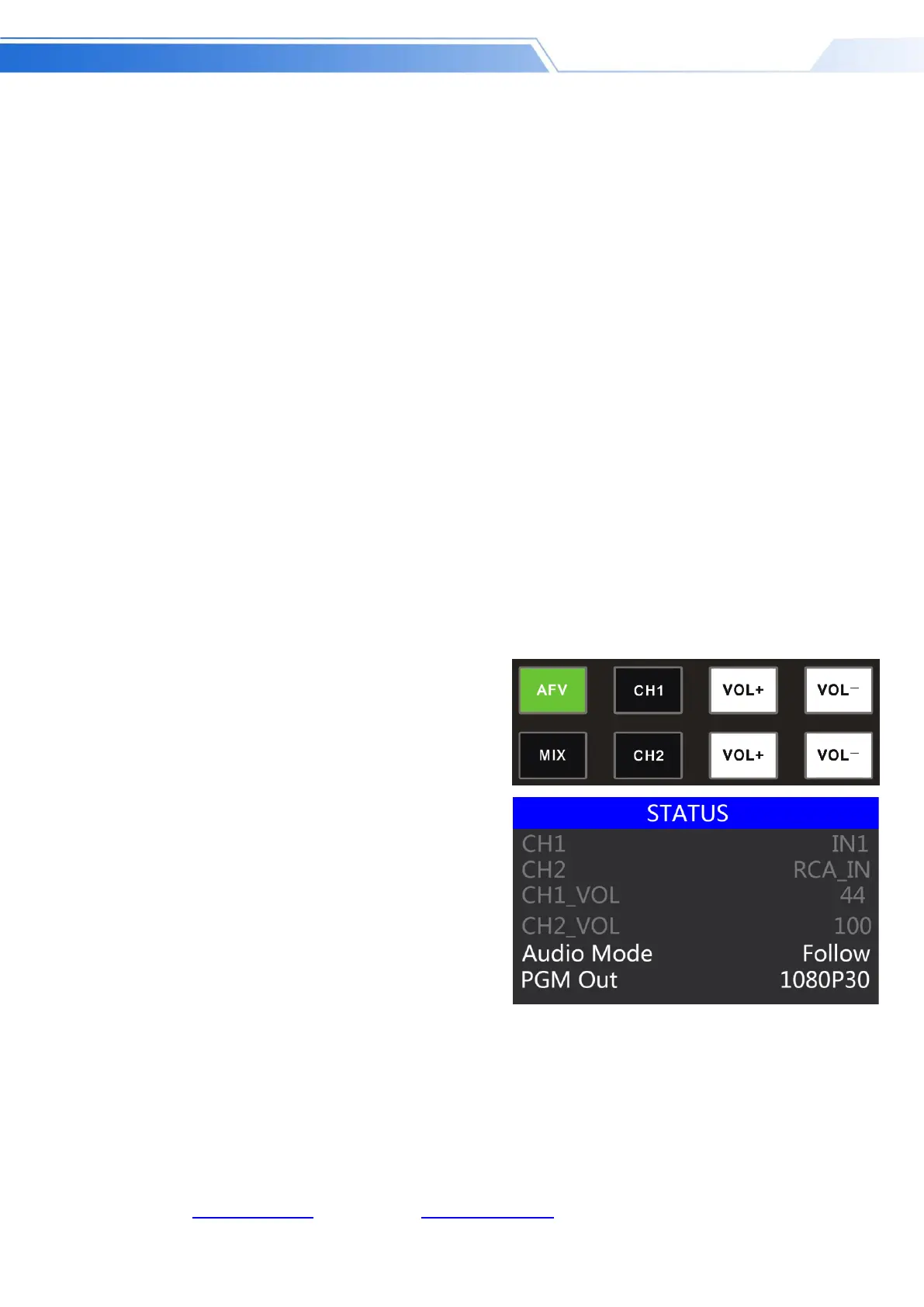 2. The channels of the audio follow mode are IN1-HDMI1, IN2-HDMI 2, IN3- HDMI 3, IN4- HDMI4,