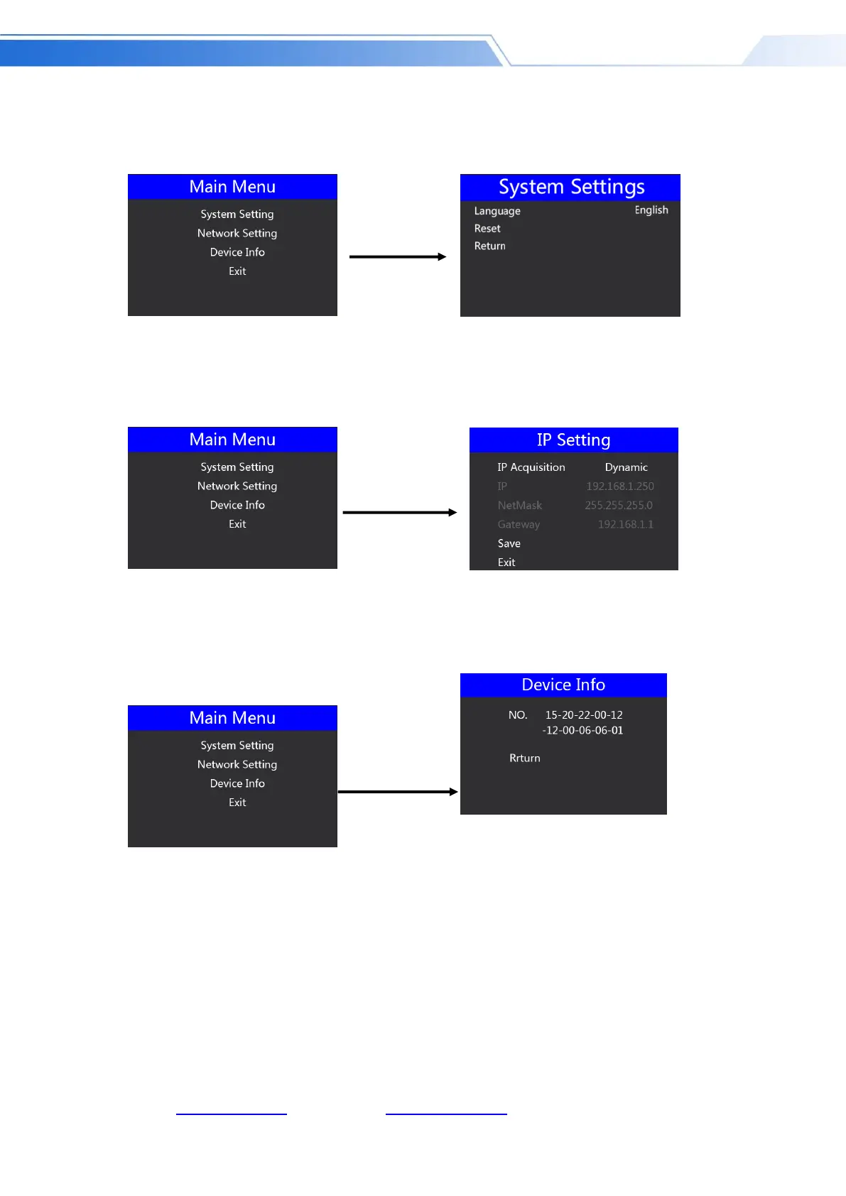 In the network setting menu, you can choose in the IP acquisition: dynamic IP or static IP. After