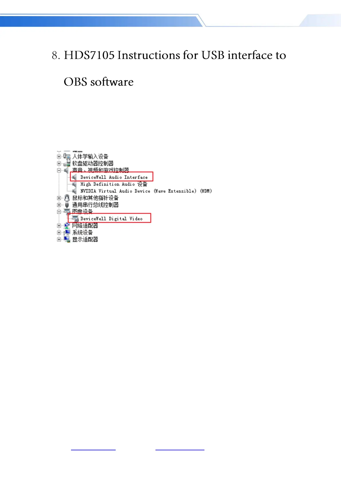 recognized, Devicewell Audio Interface and Devicewell Digital Video will appear in the device list,