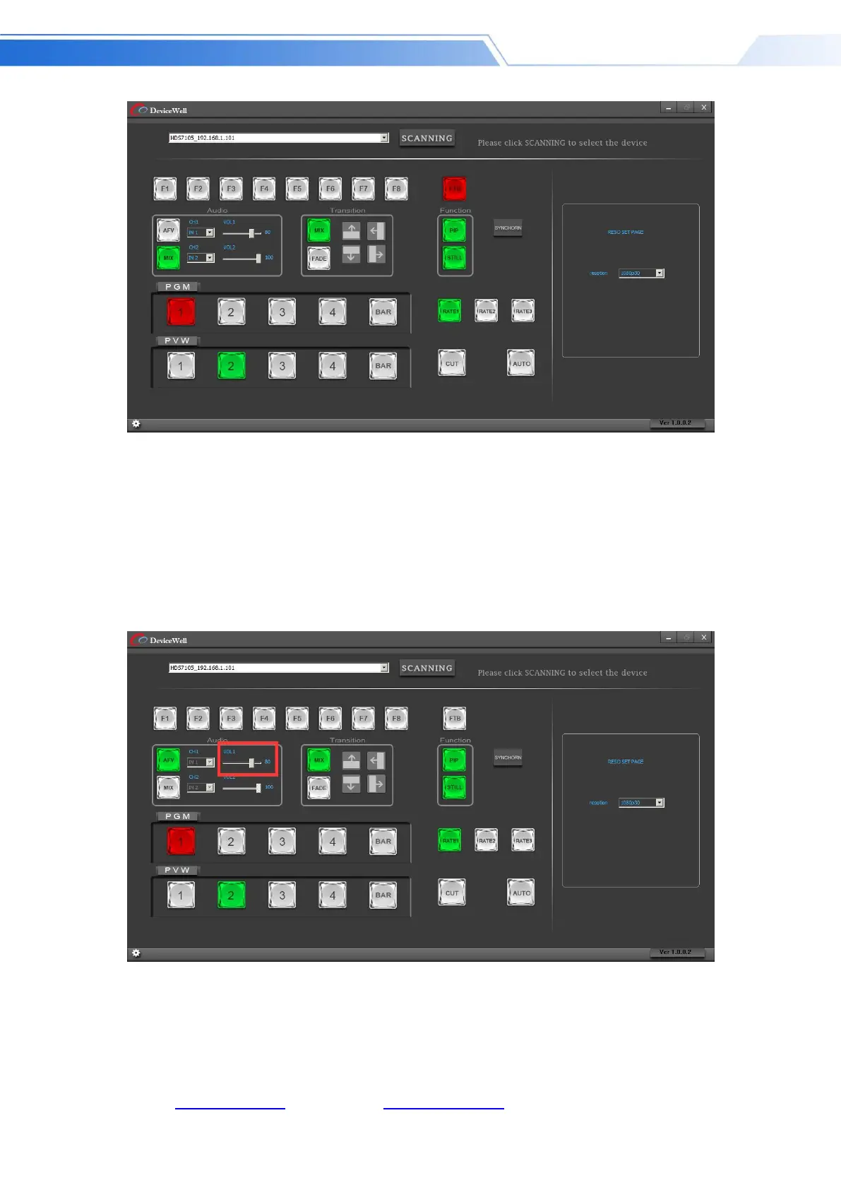 Press AFV follow mode (green light is displayed). The channels of audio follow mode are