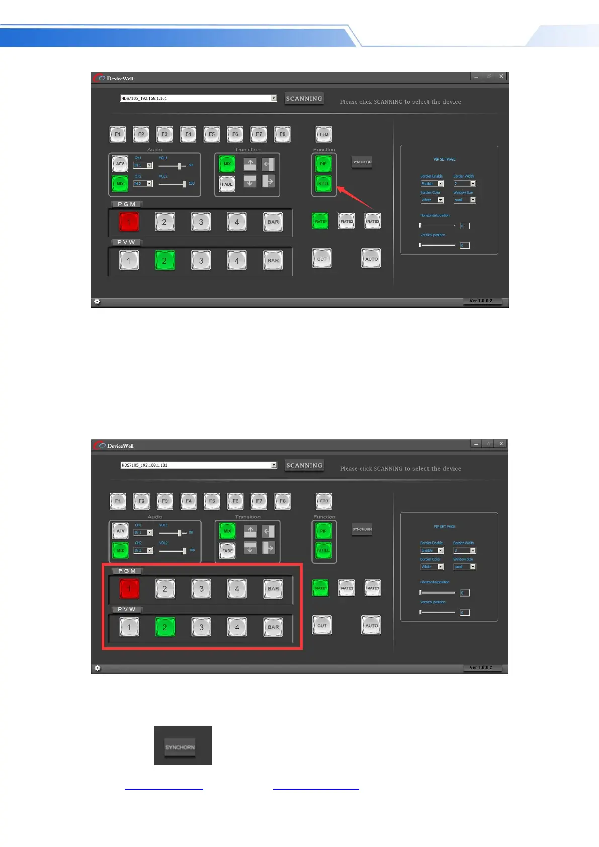 Note: If the switcher is operated on the device side, the PC-side interface cannot be displayed