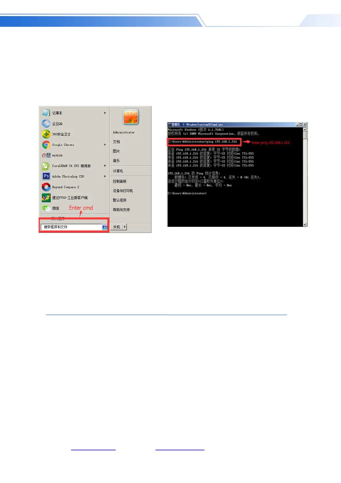 Click Start and a search box will pop up. Enter cmd and press Enter. A command line will pop up.