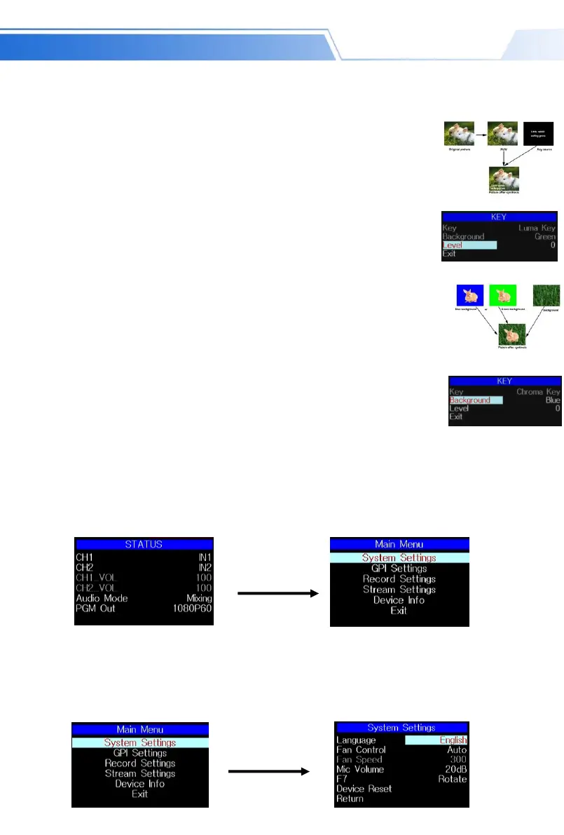 switch to superimpose the characters on PGM,Luma key settings:After pressing luma