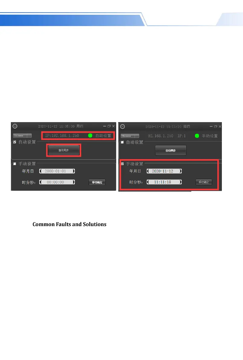 Sync, and the computer will automatically synchronize your device time. The red box in the figure is the IP