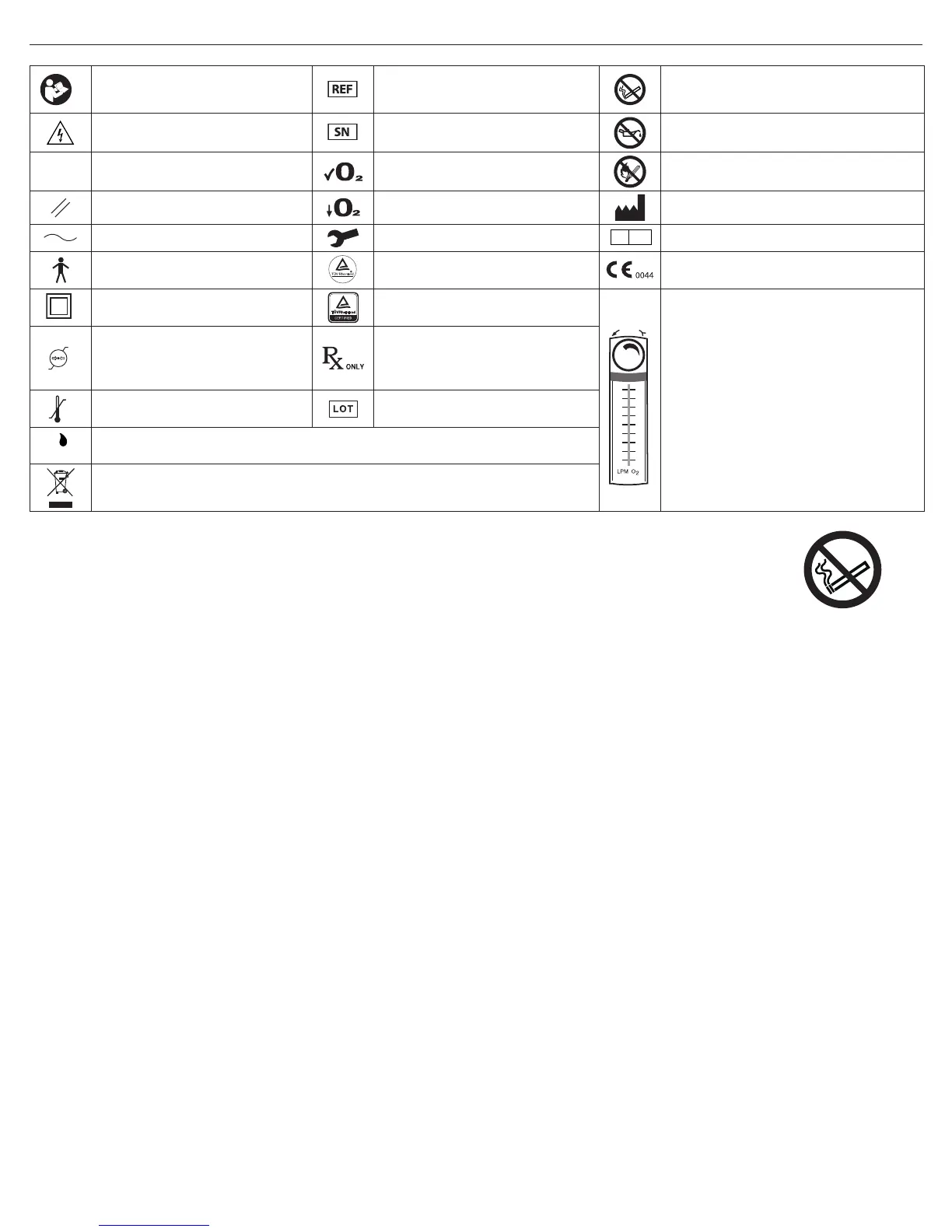 • Fumar durante la oxigenoterapia es peligroso y posiblemente produzca quemaduras en el rostro e incluso causar la muerte. No permita que se fume dentro de una