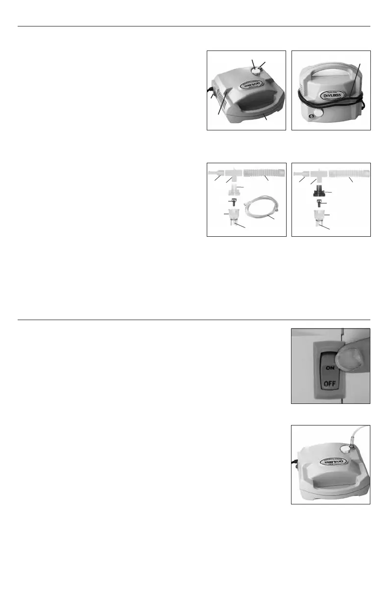 4. Connect one end of the nebulizer tubing to the compressor air-outlet connector