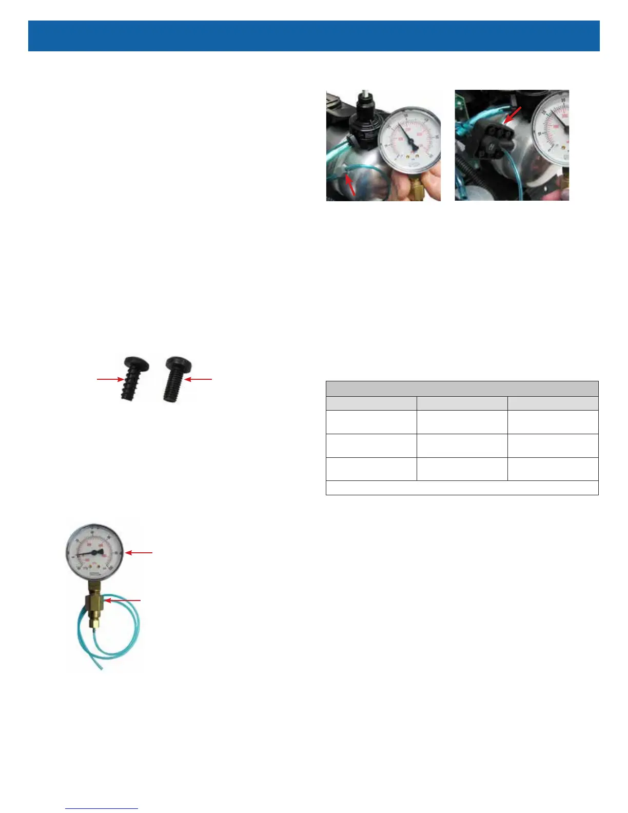 3. Use the pressure gauge (part #PVO2D-601) and pressure test assembly