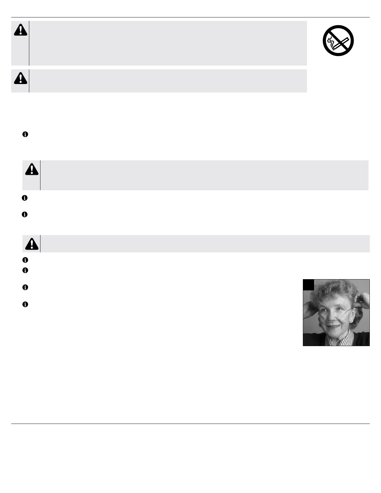 L’oxygène facilite le début et la propagation d’incendies. Ne laissez pas la canule nasale ou le masque sur les couvre-lits ou les coussins de sièges. Si le